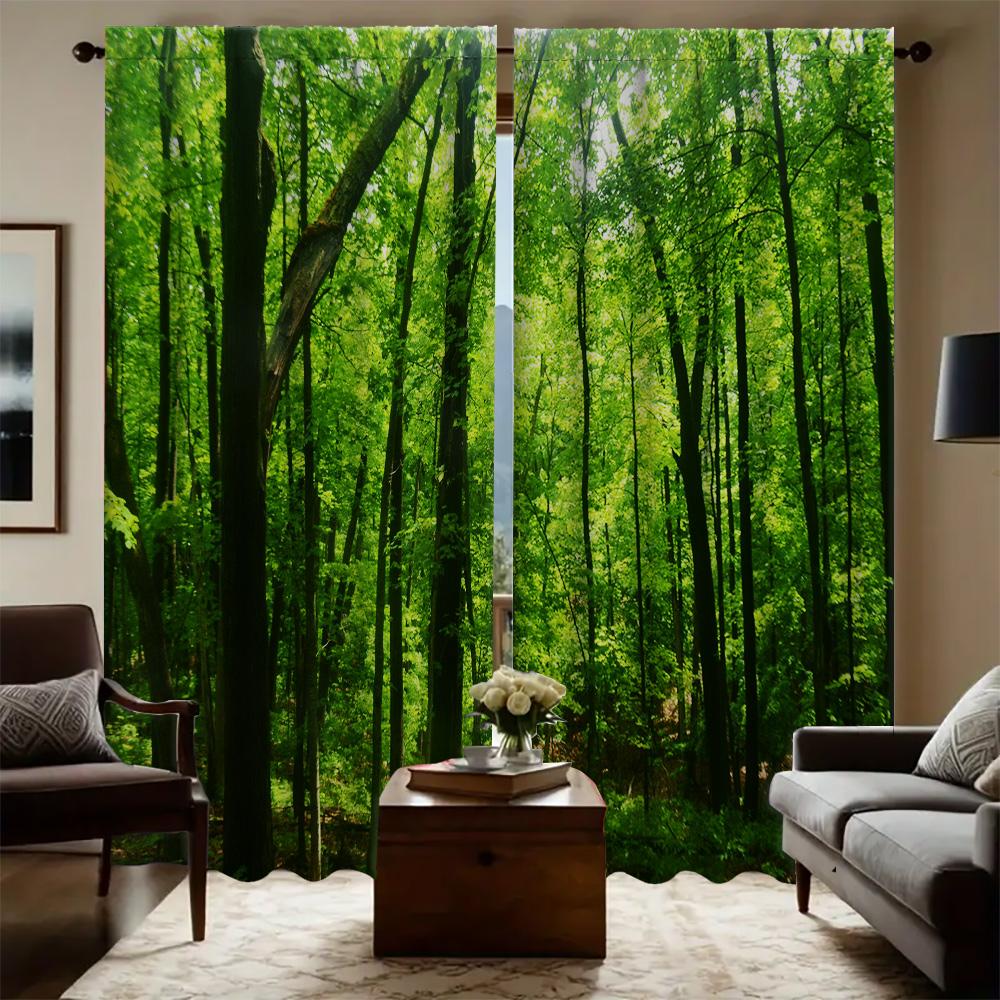 2 шт. Домашние шторы «Зеленый лес» с пейзажным фоном и шторы с карманом для штанги, Кухня, Кофейня, Гостиная
