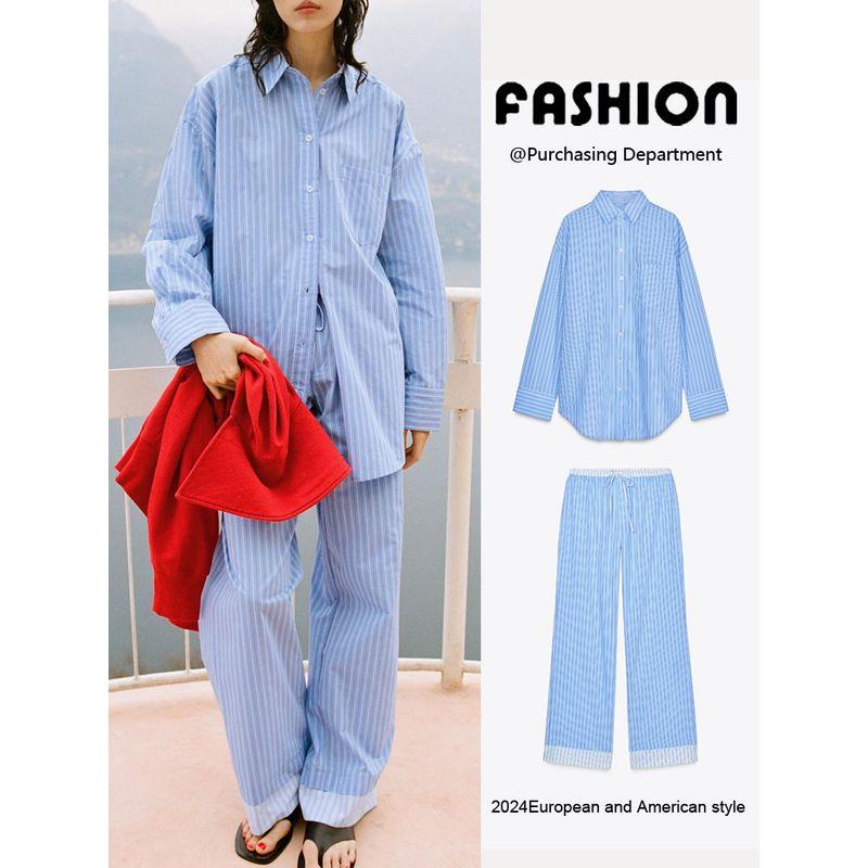 Za2025 Spring New Women clothes Stripe Long sleeve Shirts 5030011 Mid-Waist Trousers 5030402 044