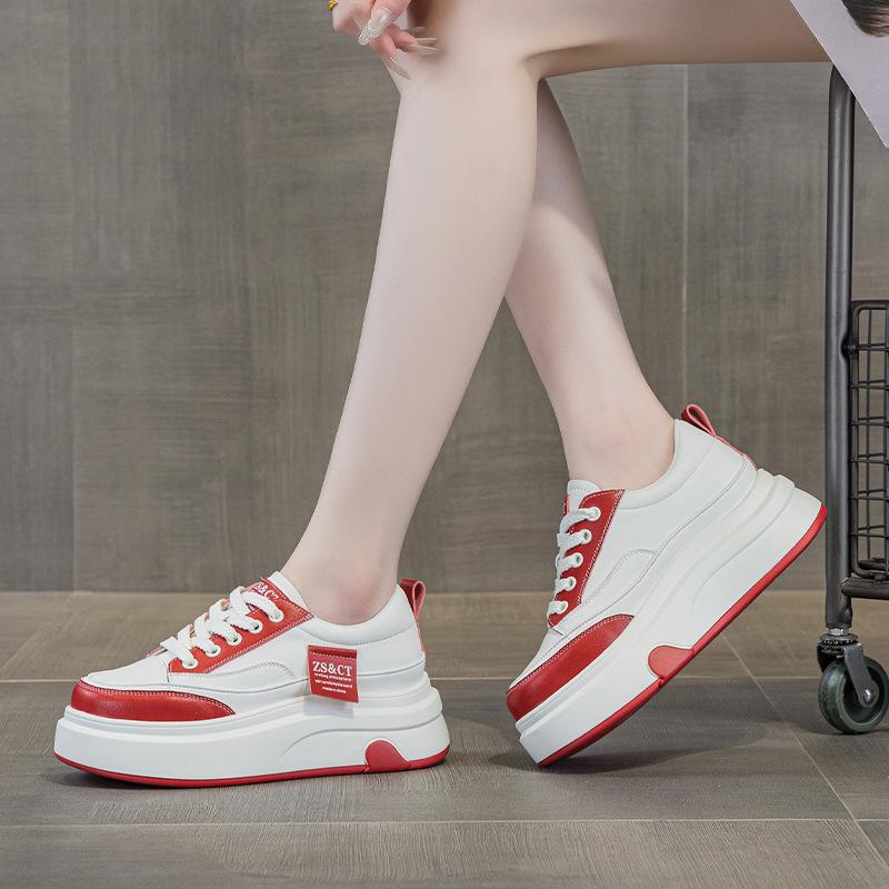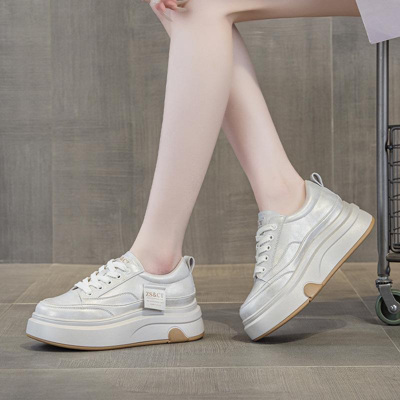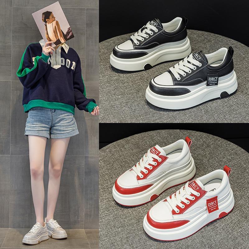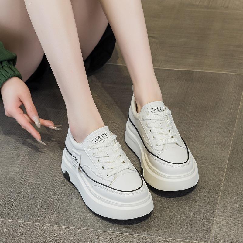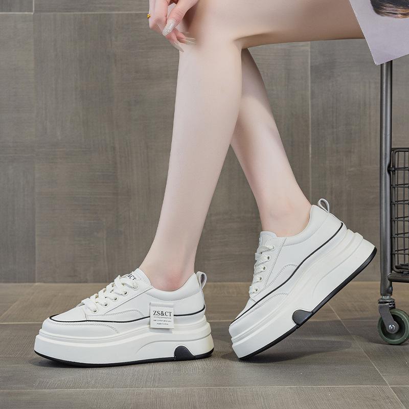9978 кожаные белые туфли женские весенние новые на толстой подошве удобные нескользящие универсальные спортивные из коровьей кожи повседневные кеды