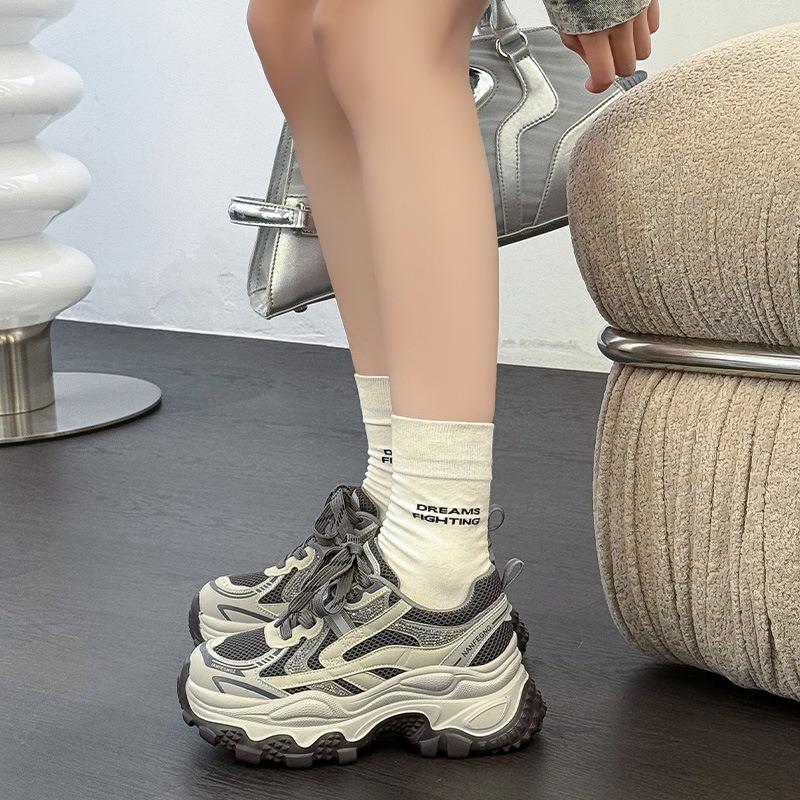 Папины кроссовки женские осенние новые модные со стразами на толстой подошве для увеличения роста маленькие повседневные спортивные туфли