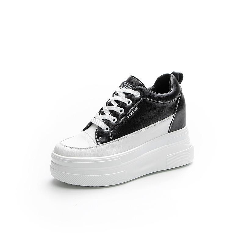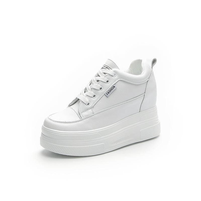 Белые туфли на танкетке из кожи для женщин, новинка осени, туфли на толстой подошве-маффин, повседневные одинарные туфли, увеличивающие рост