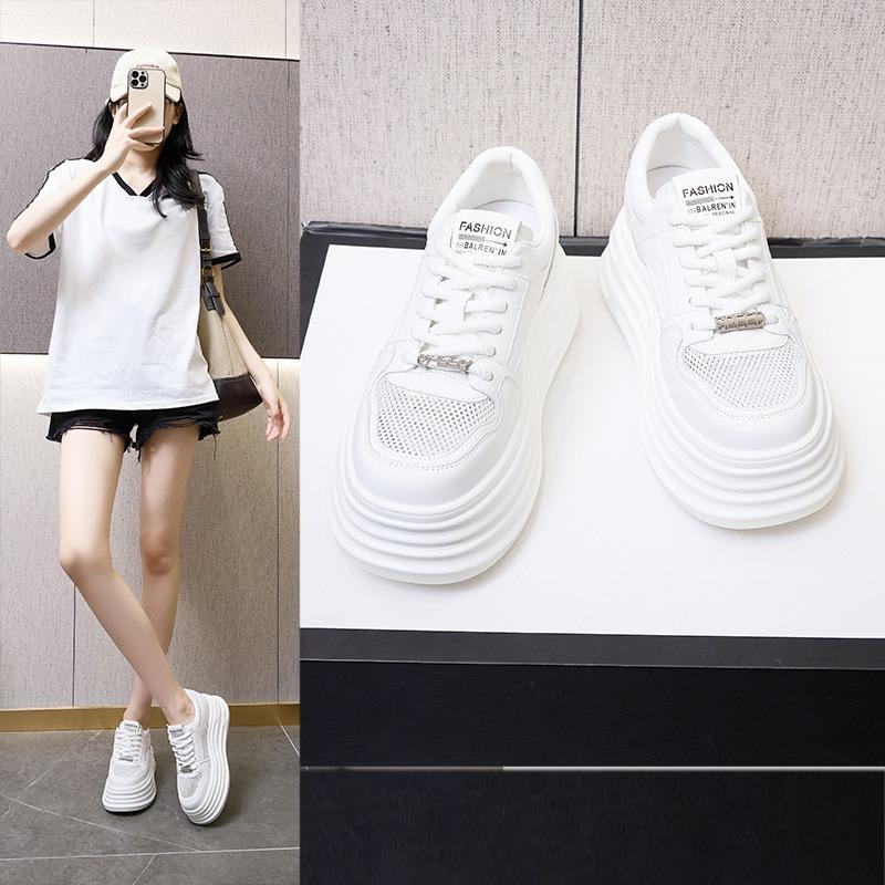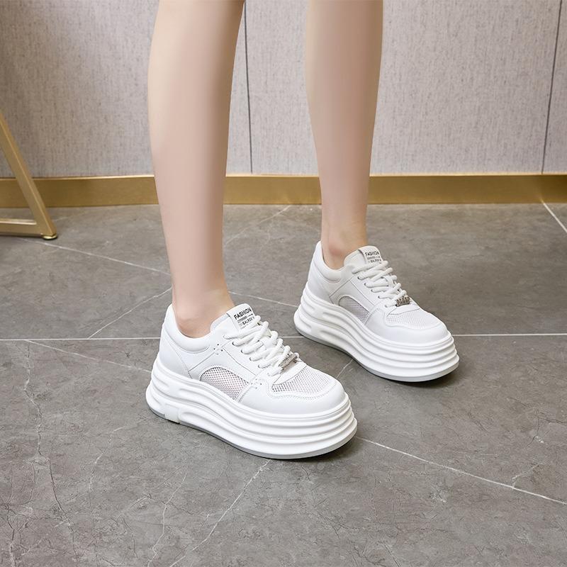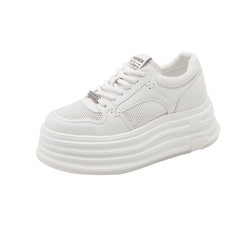 Женские белые кроссовки из сетки и кожи на платформе, женские спортивные кроссовки с внутренней высотой, повседневные кеды на шнуровке