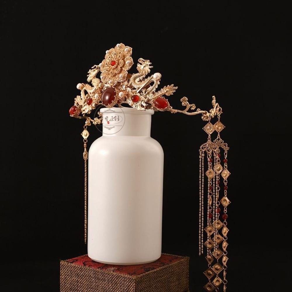 3. **Новый китайский стиль с длинными кисточками**: Этот аксессуар для волос, сочетающий в себе традиционные элементы и современную эстетику, отличается длинными, струящимися кисточками, которые добавляют движения и изящества.. Новый дизайн в китайском стиле делает его универсальным изделием, которое дополнит как классические свадебные платья в стиле ханьфу, так и современные свадебные платья.