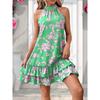 Ruffled Dress2024 Summer Women's Sleeveless Elegance Backless Skirt Ruffles Print Halterneck Dress