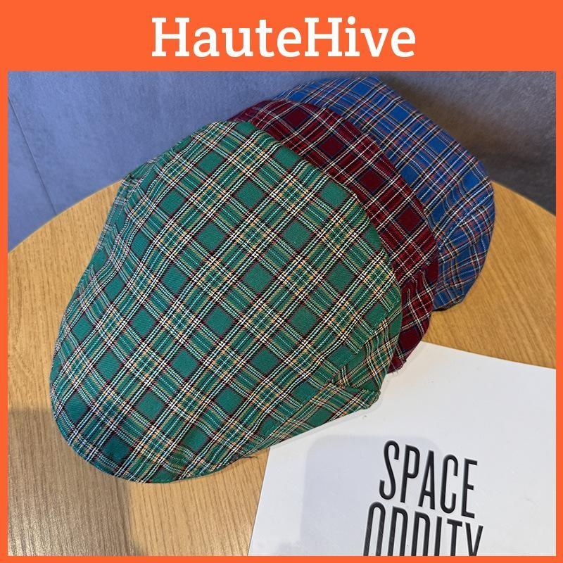 Винтажный клетчатый берет из дышащего хлопка для женской моды