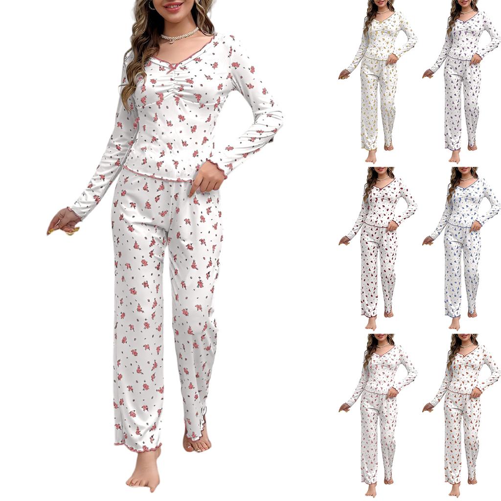Женский костюм для сна с длинными рукавами и брюками с цветочным принтом — купить товар онлайн с бесплатной доставкой по всему миру!