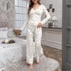 Женский костюм для сна с длинными рукавами и брюками с цветочным принтом