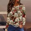 Женская модная повседневная свободная футболка с разрезом и круглым вырезом с длинным рукавом с принтом, женский топ