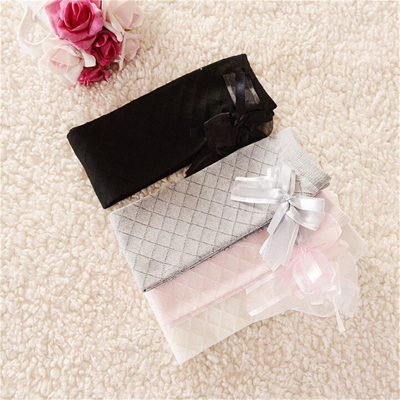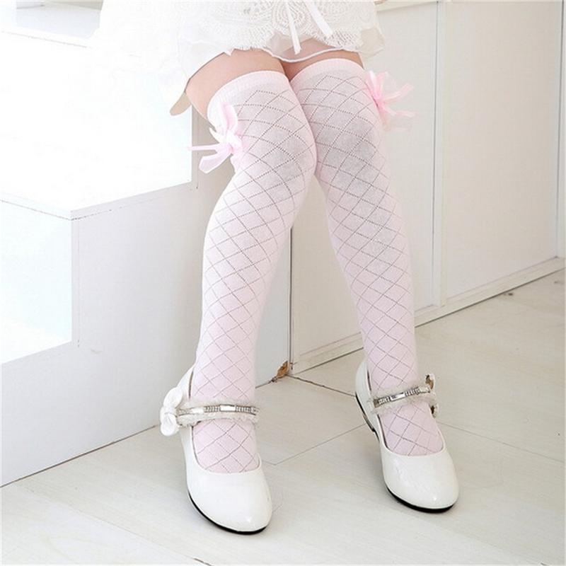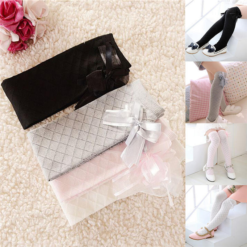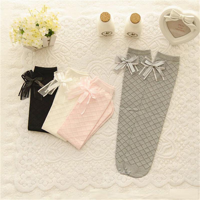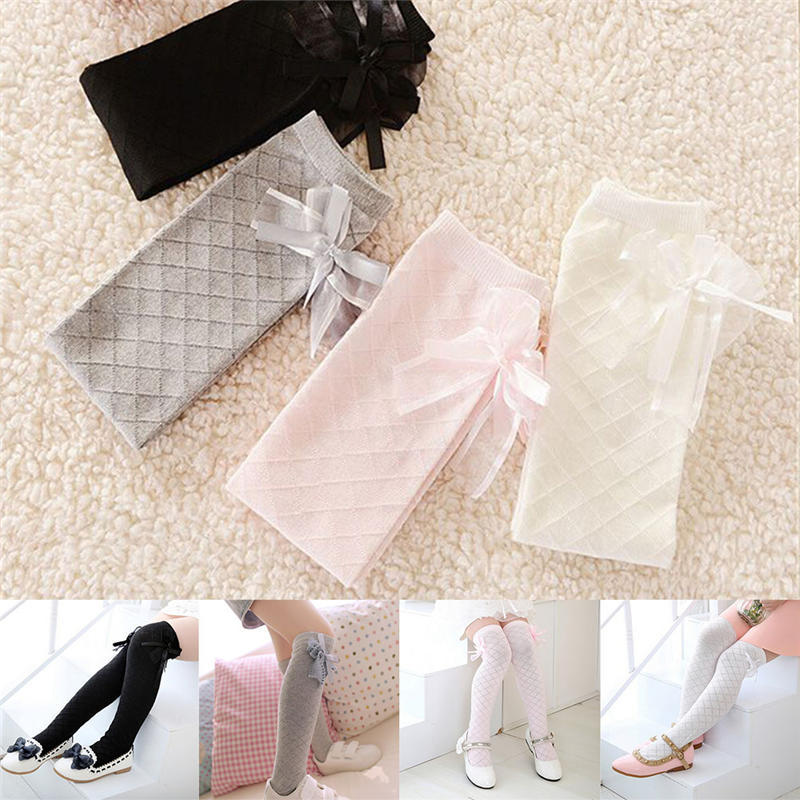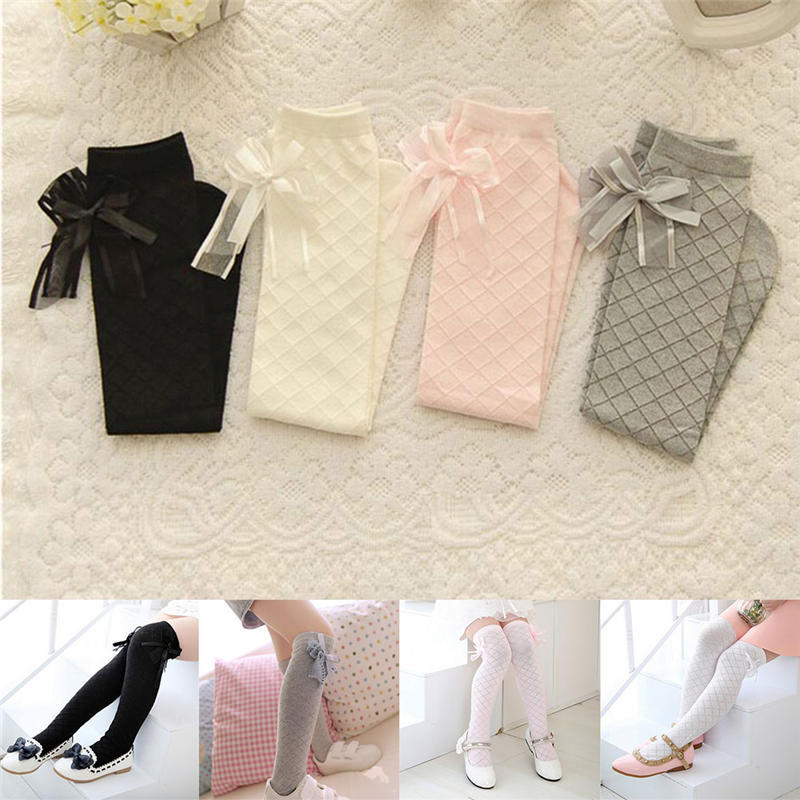 Классические детские хлопковые носки для девочек, колготки, школьные чулки до колена с бантиком