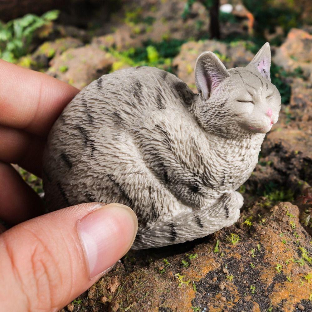 Миниатюрная фигурка спящей кошки, скульптура, животные, украшения, забавная имитация, статуэтка кошки, офис