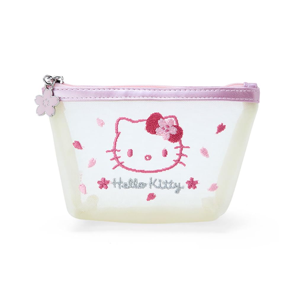 Этот мешочек сделан из прозрачного сетчатого материала и имеет полностью вышитый дизайн. Он поставляется с пуллером-маскотом в форме цветка сакуры. Имеет застежку-молнию.