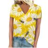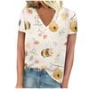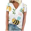 Винтажная женская футболка с принтом пчелы, с коротким рукавом, с V-образным вырезом, удобные футболки