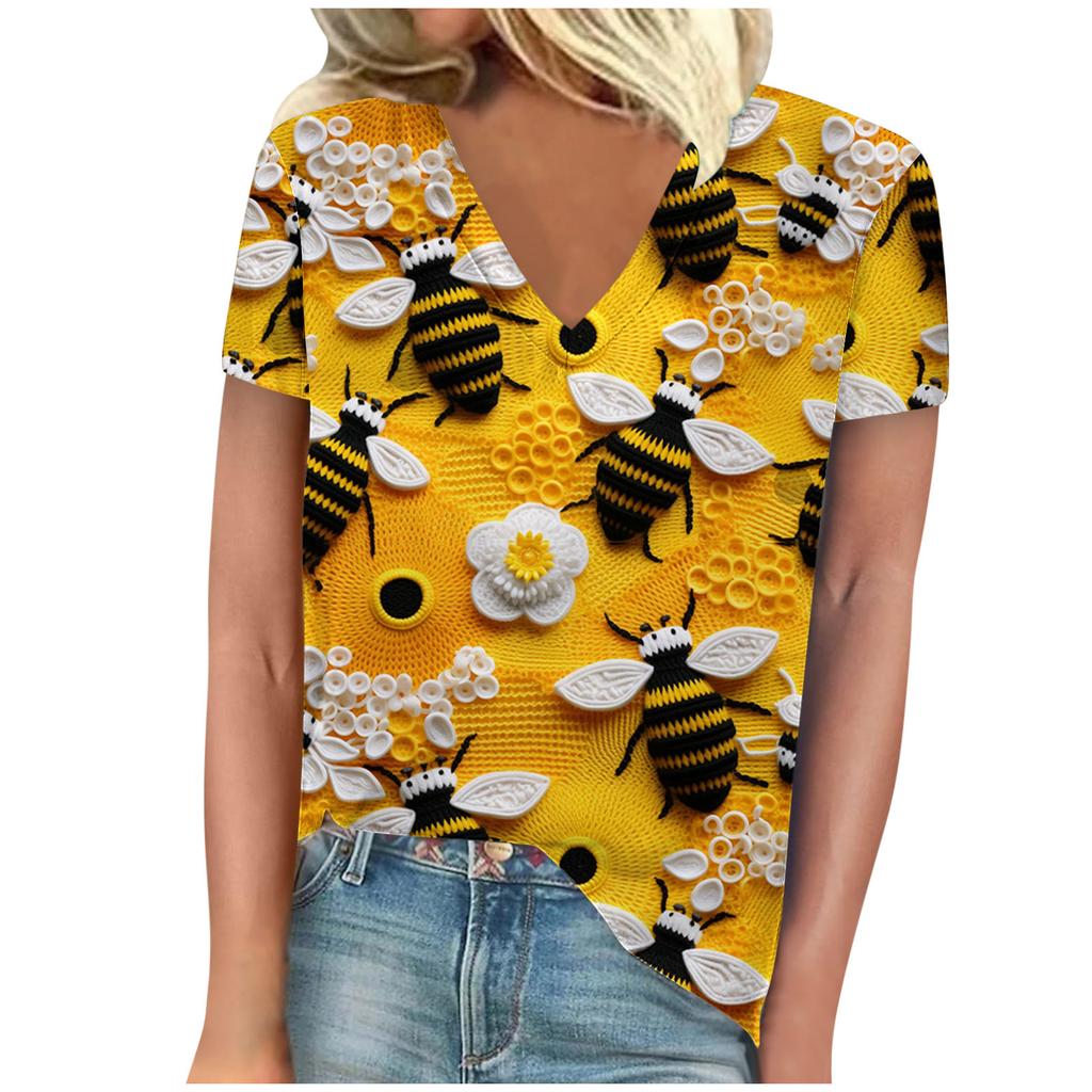 Винтажная женская футболка с принтом пчелы, с коротким рукавом, с V-образным вырезом, удобные футболки — купить товар онлайн с бесплатной доставкой по всему миру!