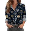 Женская повседневная рубашка с рождественским принтом, полуоткрытым воротником и длинными рукавами