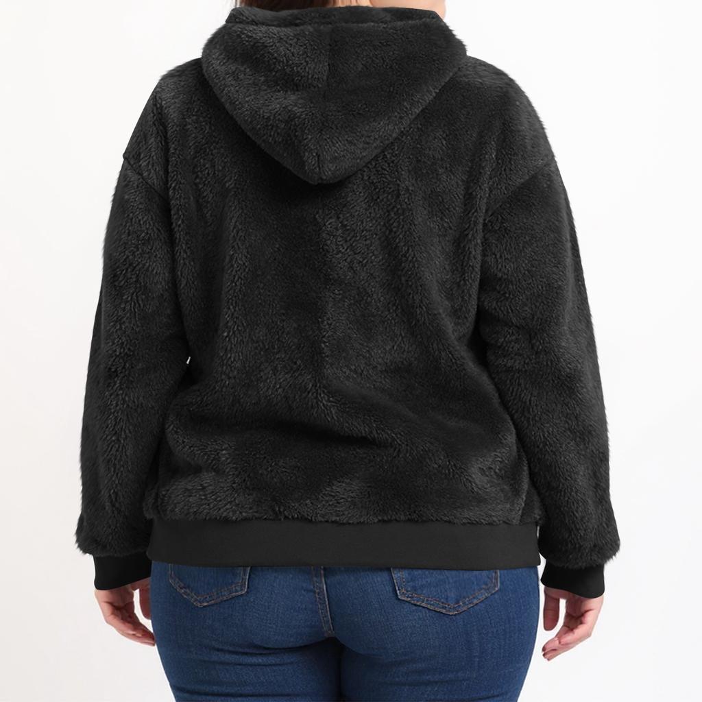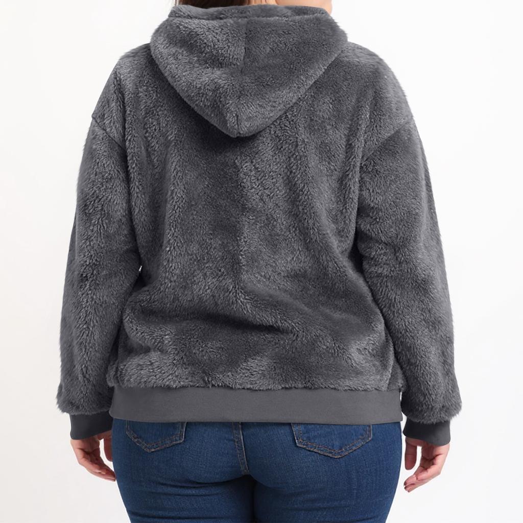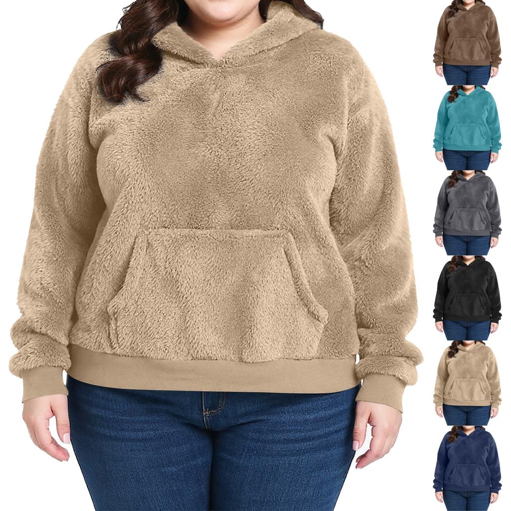 Женская повседневная флисовая толстовка с капюшоном, однотонная, с длинным рукавом, большого размера
