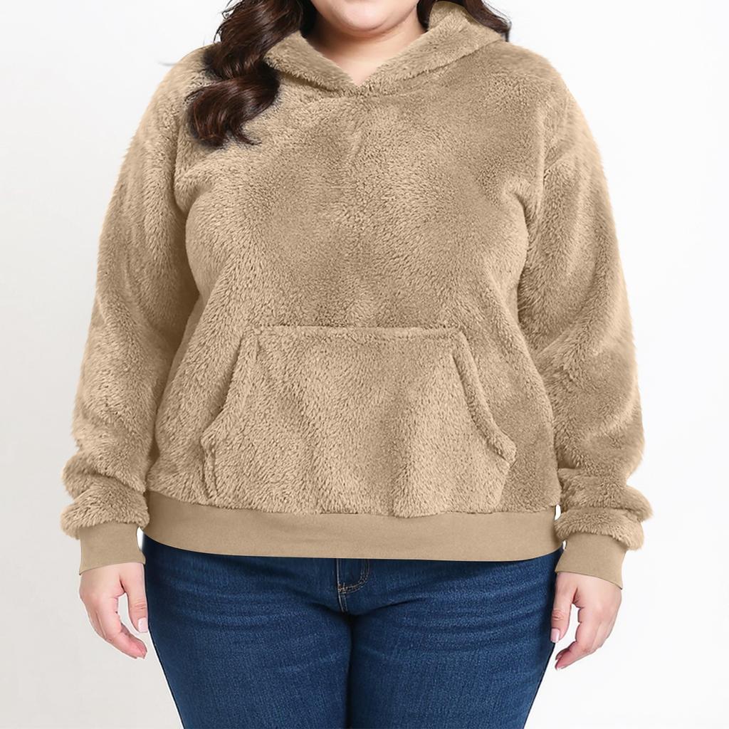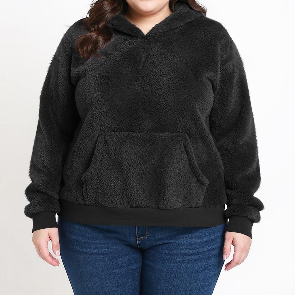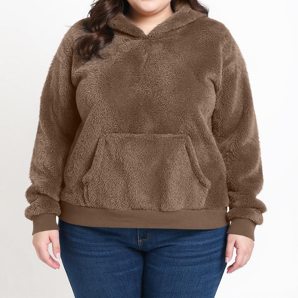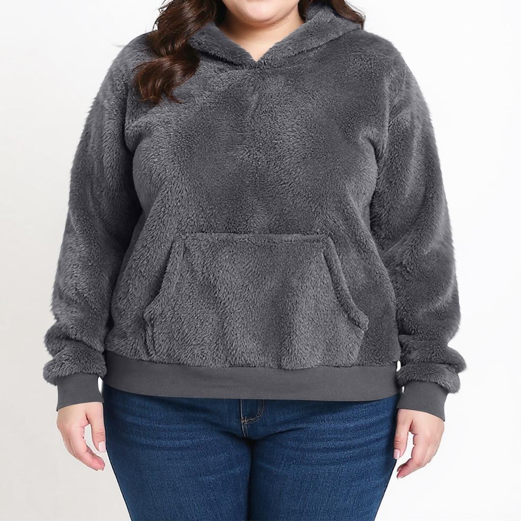 Женская повседневная флисовая толстовка с капюшоном, однотонная, с длинным рукавом, большого размера