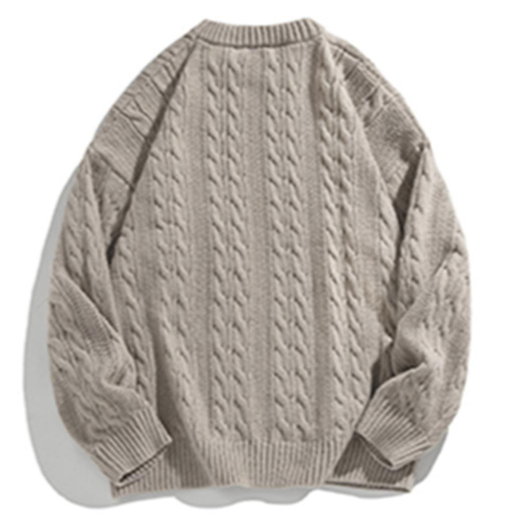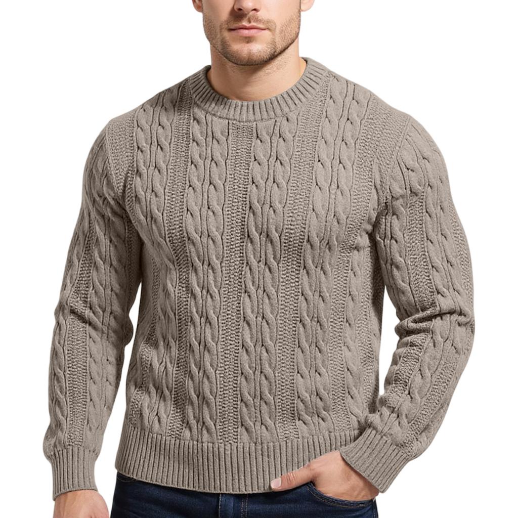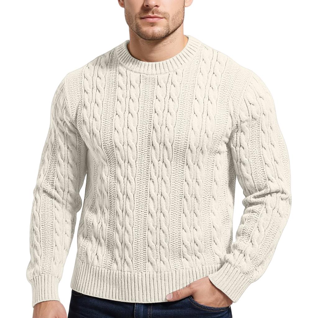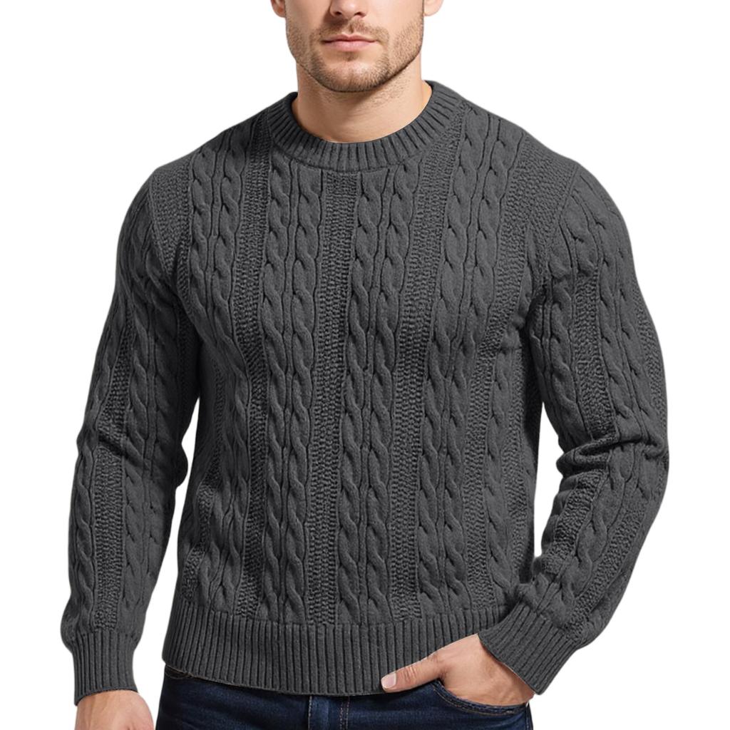 Мужской Текстурный Витой Цветок Процесс Круглый Вырез Утолщенный Пуловер Вязаный Свитер Свитер