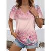 Винтажная женская футболка с цветочным принтом, с коротким рукавом, с V-образным вырезом, топы, удобные футболки