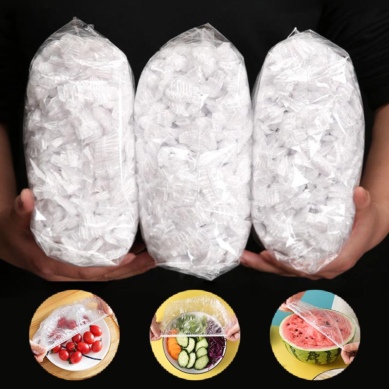 3packs(100pcs/pack) Disposable Food Cover Plastic Wrap Elastic Food Lids For Fruit Bowls Storage Kitchen Fresh Keeping Film Food Charlotte