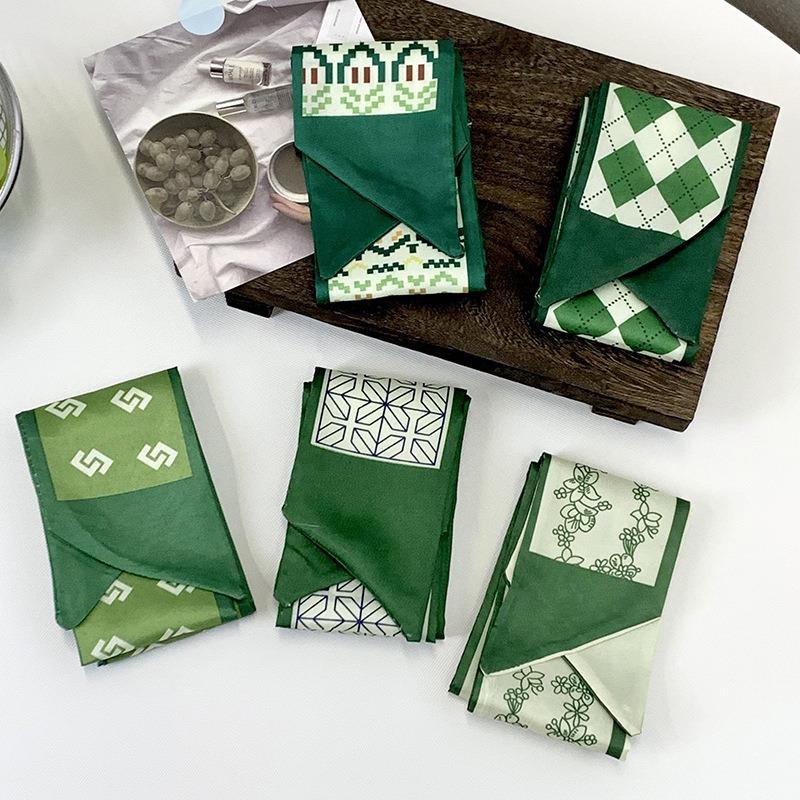 Шелковый шарф, длинная полоса, высококачественный зеленый галстук, тонкий и узкий шарф, резинка для волос, декоративная лента, подарочная коробка, лента, пояс.