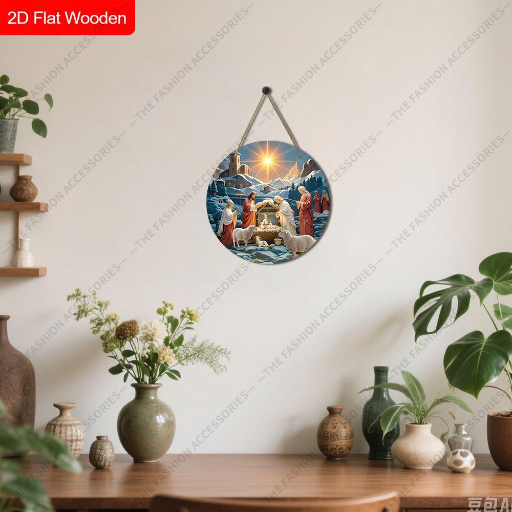 Подвеска «Святая ночь», украшение для стен или дверей дома, плоская деревянная 2D, рождественское украшение, подарки для друзей и семьи