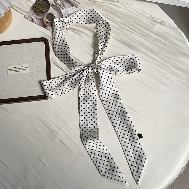 Шелковый шарф 190 см в горошек тонкий узкий высококлассный маленький галстук повязка для волос женский стример ремешок для сумки