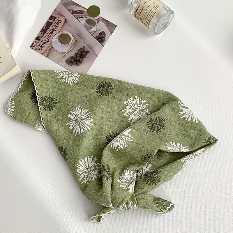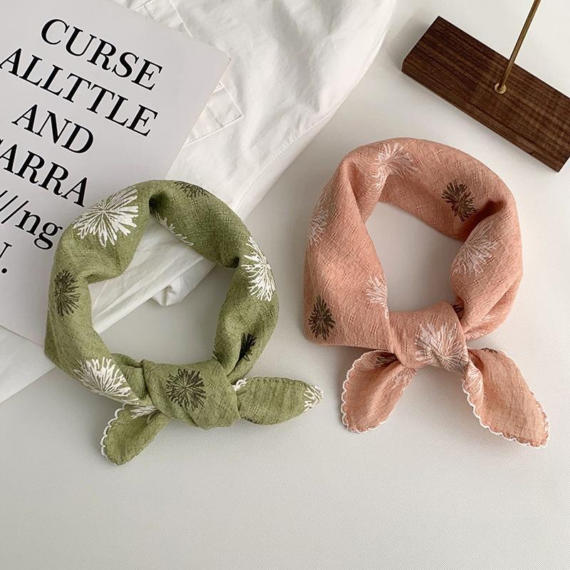 Хлопково-льняной шелковый шарф на шею маленький квадратный шарф летний ретро литературный цветочный декор защита шеи маленький шарф шарф головной платок повязка на голову