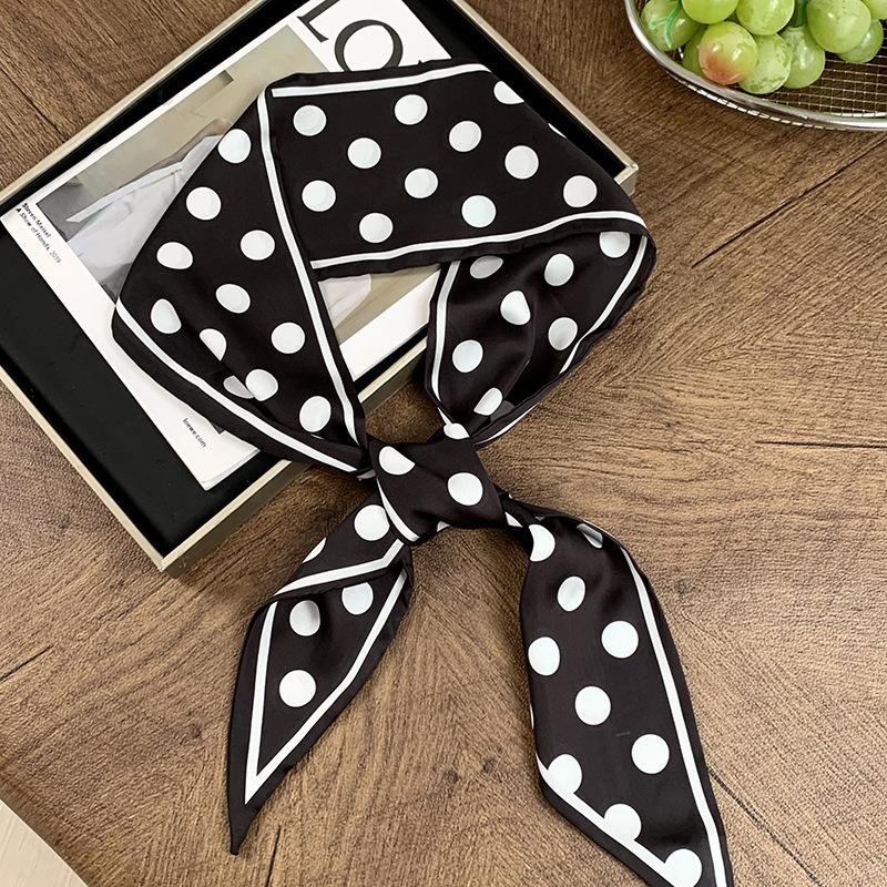 Шелковый шарф в горошек, длинная полоса, высококлассный и универсальный декоративный шарф, новый шарф из искусственного шелка, косынка, повязка на голову, ремешок для сумки.