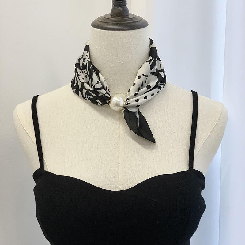Шелковый шарф новое жемчужное ожерелье весенне-летний тонкий магнитная застежка ленивый шелковый шарф женский шарф-подвеска цепочка на ключицу