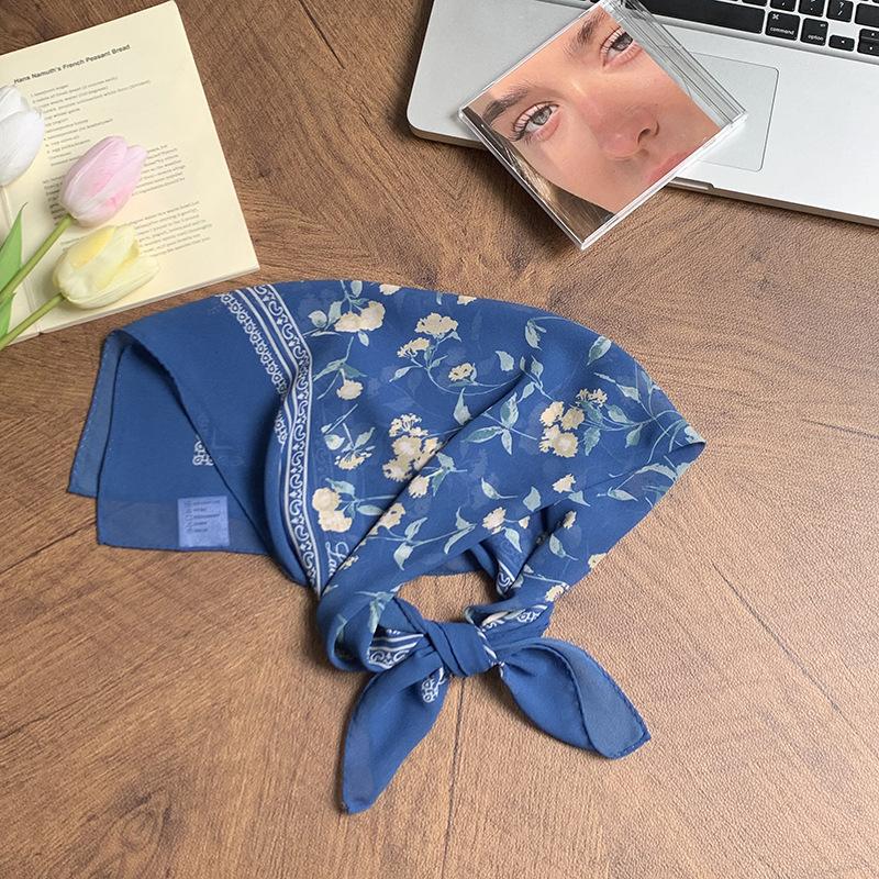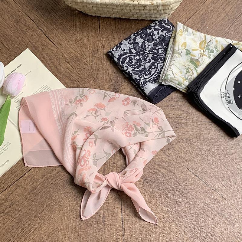 Шелковый шарф из жоржета шейный маленький квадратный шарф защита шеи шарф свежий цветочный платок летний женский пасторальный ободок аксессуары для волос