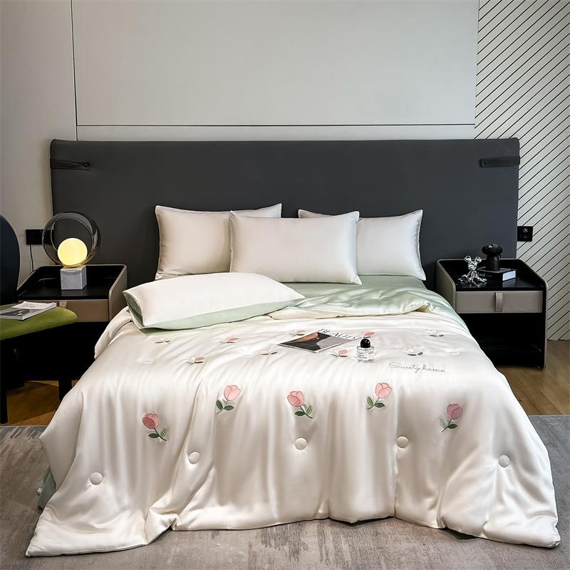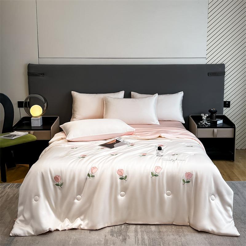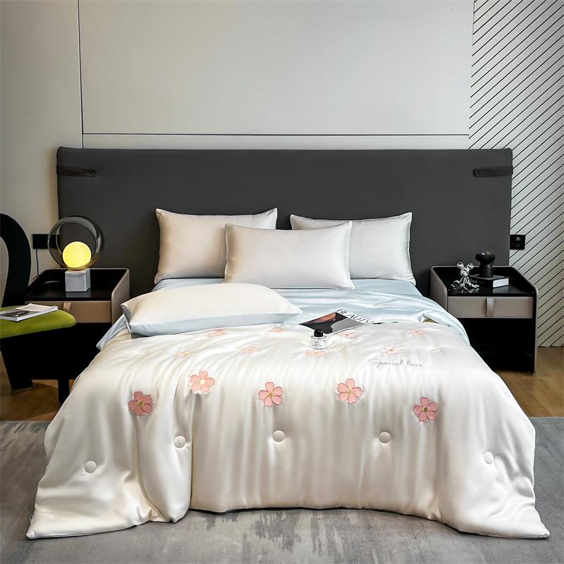 Прохладное летнее одеяло из ледяного шелка, цельное, с цветочным рисунком, летнее прохладное одеяло, одинарное, для общежития, с кондиционером, машинная стирка