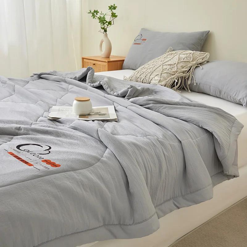 Японское летнее одеяло - Однотонное из стираного хлопка, Легкое дышащее покрывало (Без наволочки/простыни, машинная стирка)
