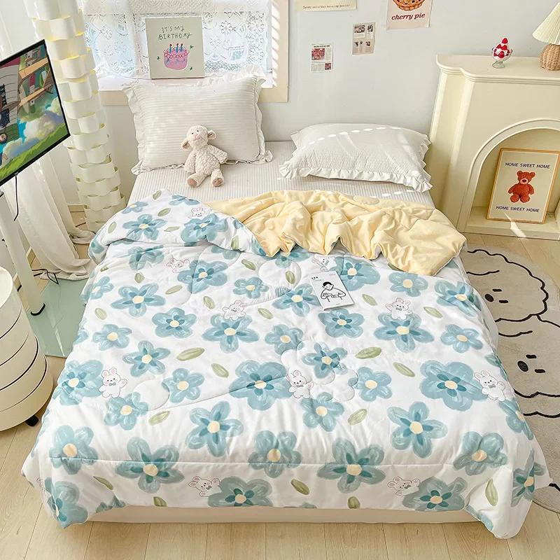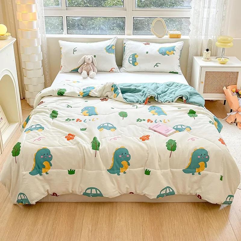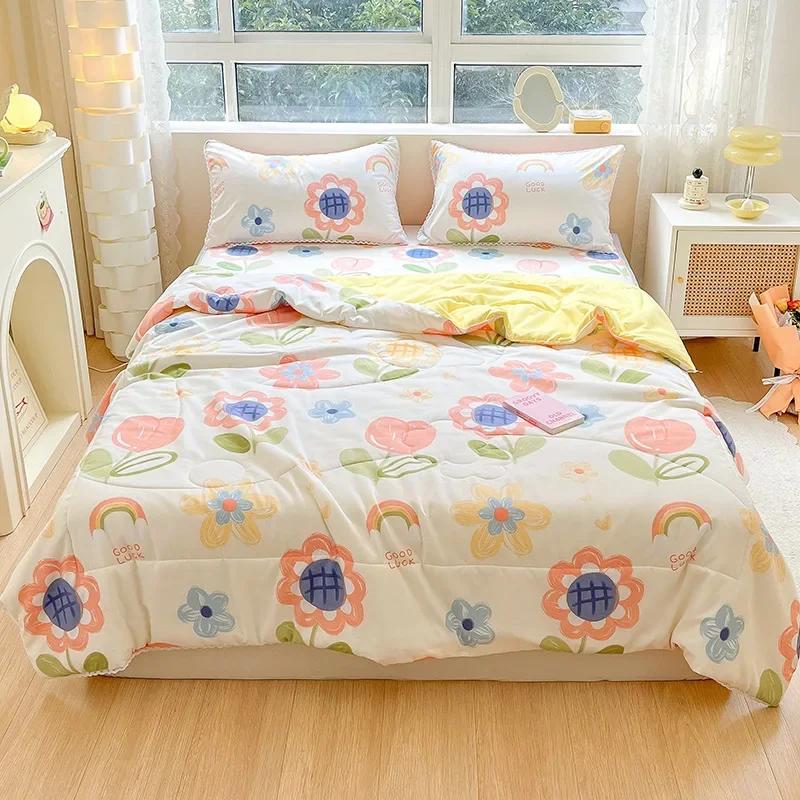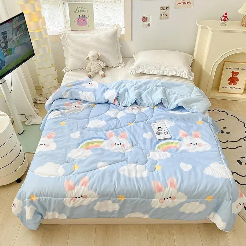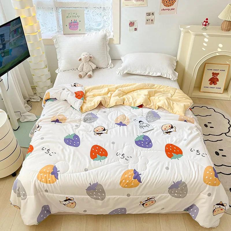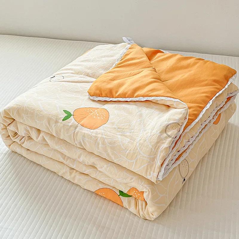 Оранжевое летнее стеганое одеяло с кружевом, которое можно стирать, для детей и взрослых, односпальной, двуспальной или королевской кровати, тонкое одеяло с милым мультяшным рисунком для подарка.