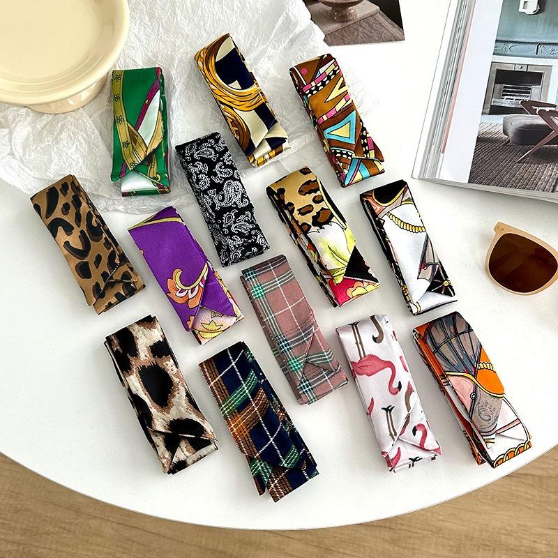 Длинный шелковый шарф новая нишевая мода универсальный клетчатый леопардовый принт шейный платок головной платок повязка на голову резинка для волос декоративный пояс