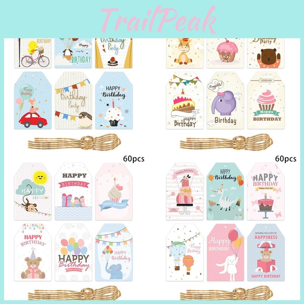 Украшения для вечеринки по случаю дня рождения с бумажными подвесными бирками и 60 шт. для оформления места проведения