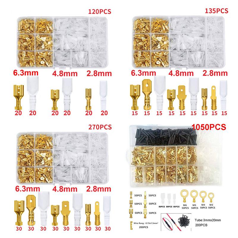 Герконовые клеммы холодного прессования 2,8/4,8/6,3 мм, изолированные, мужские и женские, обжимные наконечники, комбинированный комплект для проводов и кабелей