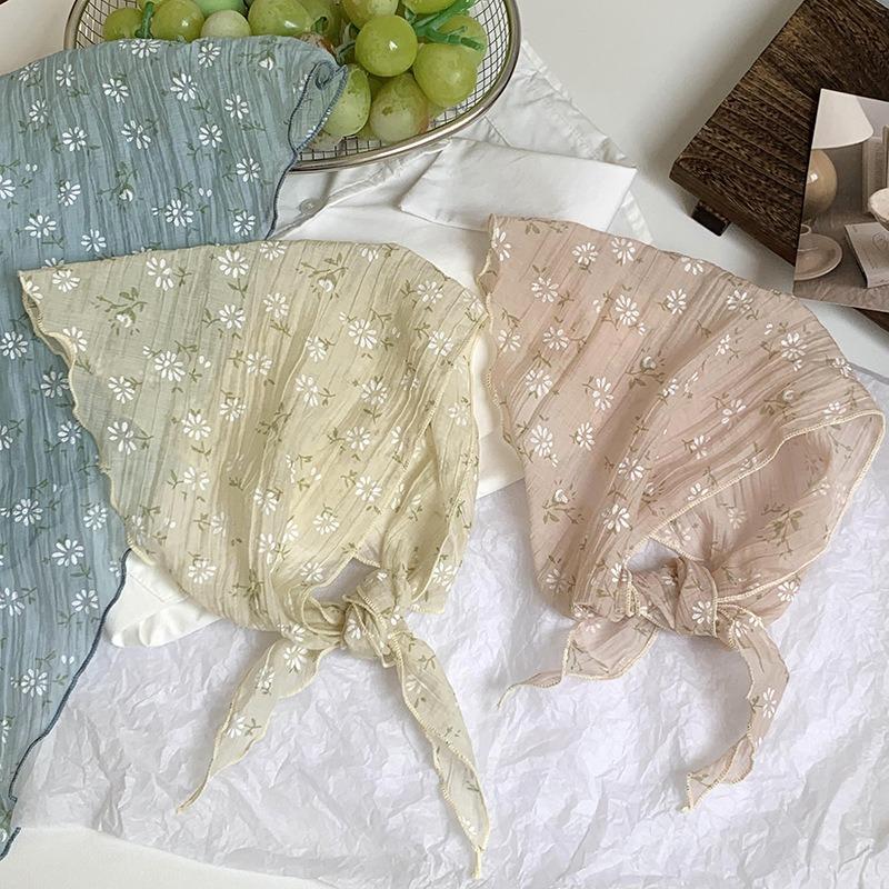 Треугольный шарф шарф женский новый цветочный платок летний женский пасторальный досуг зубчатый край шелковый шарф шарф маленький свежий аксессуар для волос