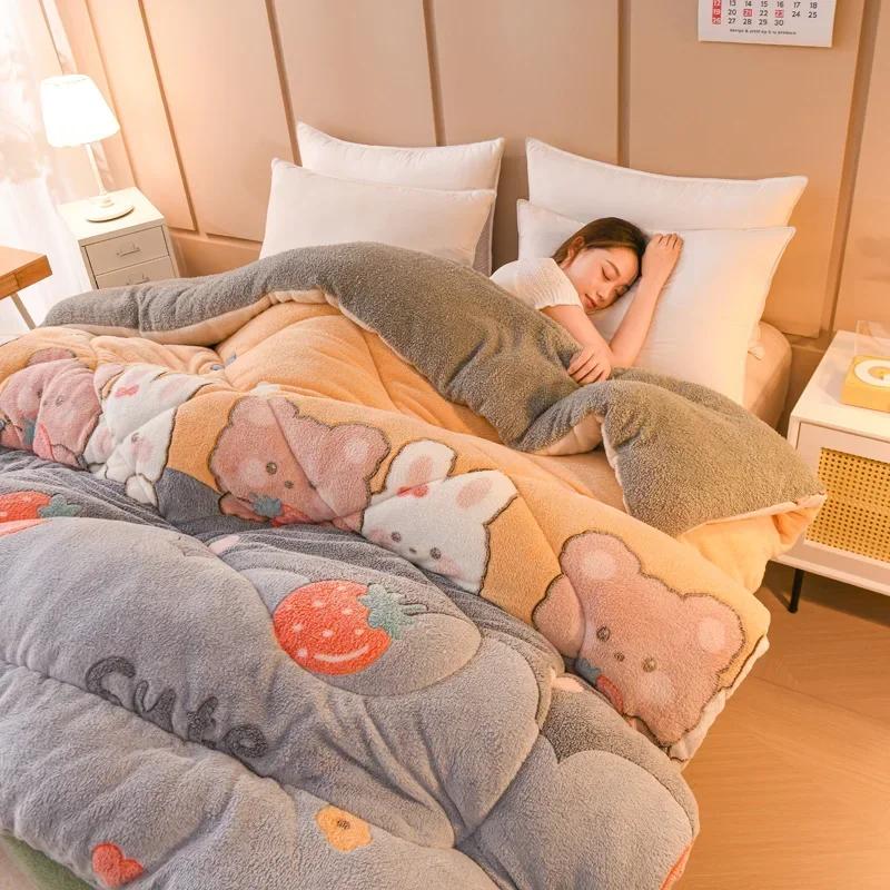 Превосходное теплое полотно Двустороннее бархатное одеяло Толстое Теплое Нежное и Мягкое Одеяло Плюшевое Односпальное Студенческое Общежитие Одеяло