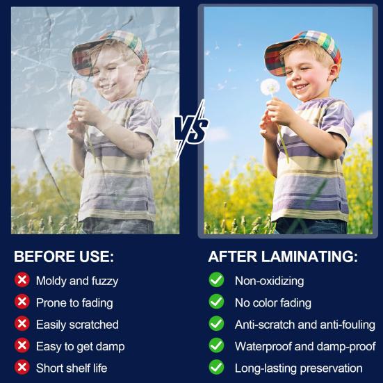 Простота в эксплуатации: Эти листы для ламинирования просты в использовании благодаря простому трехэтапному процессу.. Просто выберите шестерню подходящей толщины, вставьте изделия в ламинат и дождитесь результата запечатывания.