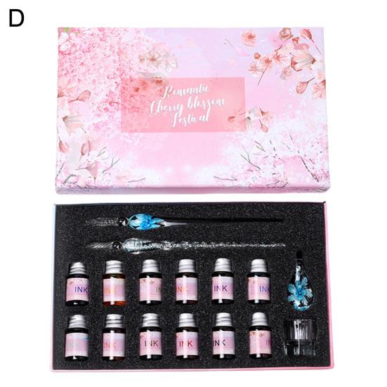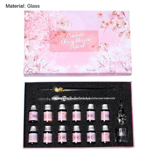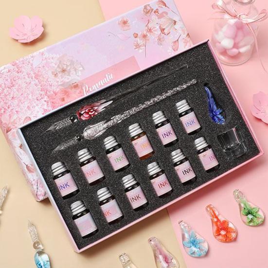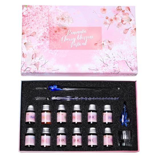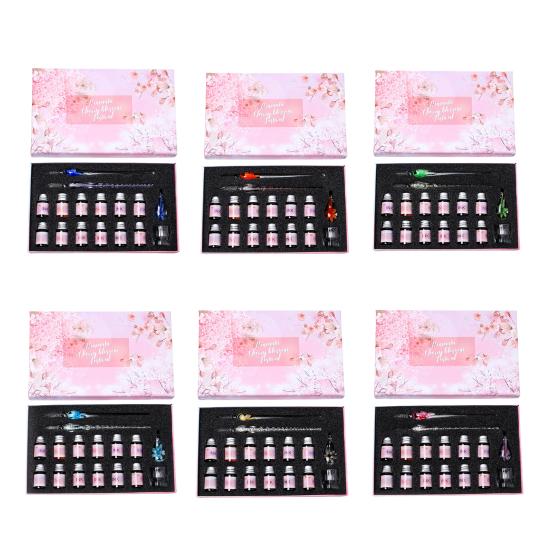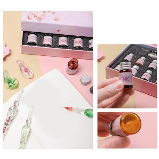 С оборудованием из 12 цветов чернил и держателем для пера, чашкой для чистки, стеклянный набор ручек позволяет писать красочные слова и удобно для вас хранить и чистить, не окрашивая другие предметы, поэтому его можно использовать в качестве ежедневных заметок для написания, вручную учетные записи, а также в качестве хорошего выбора для подарков.