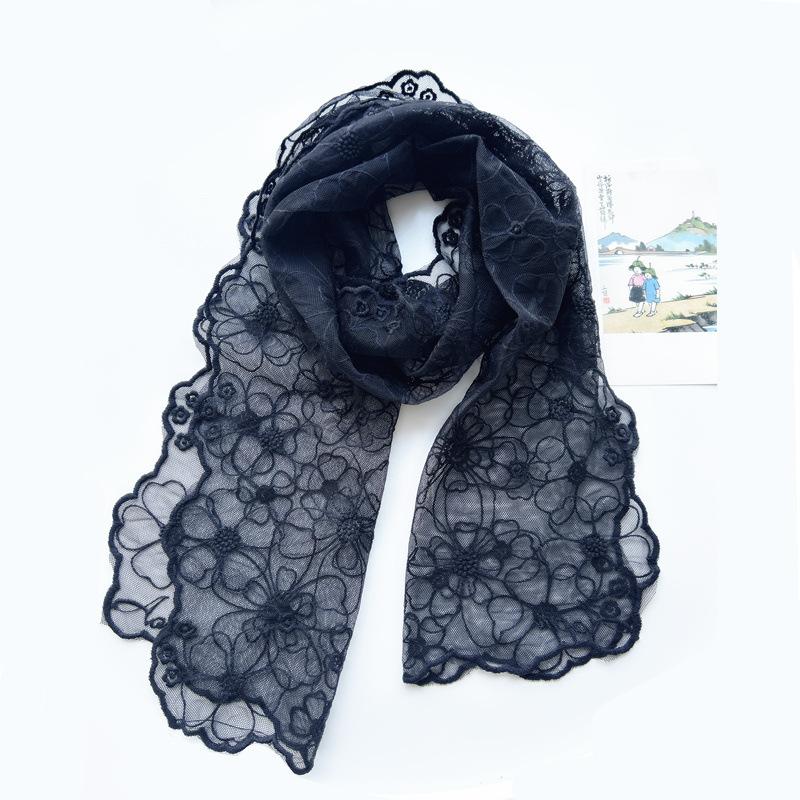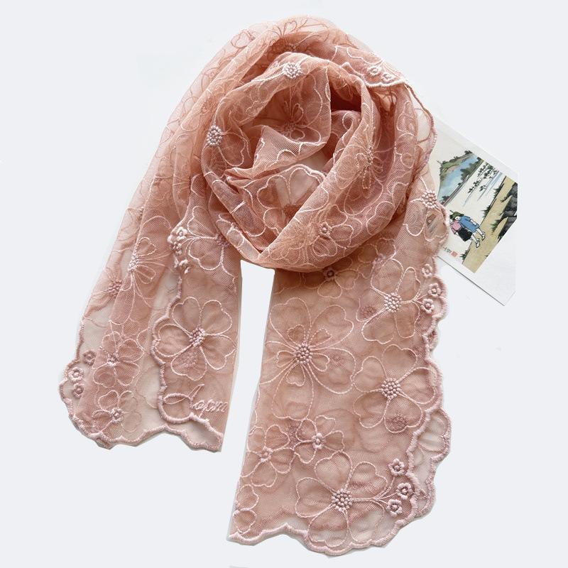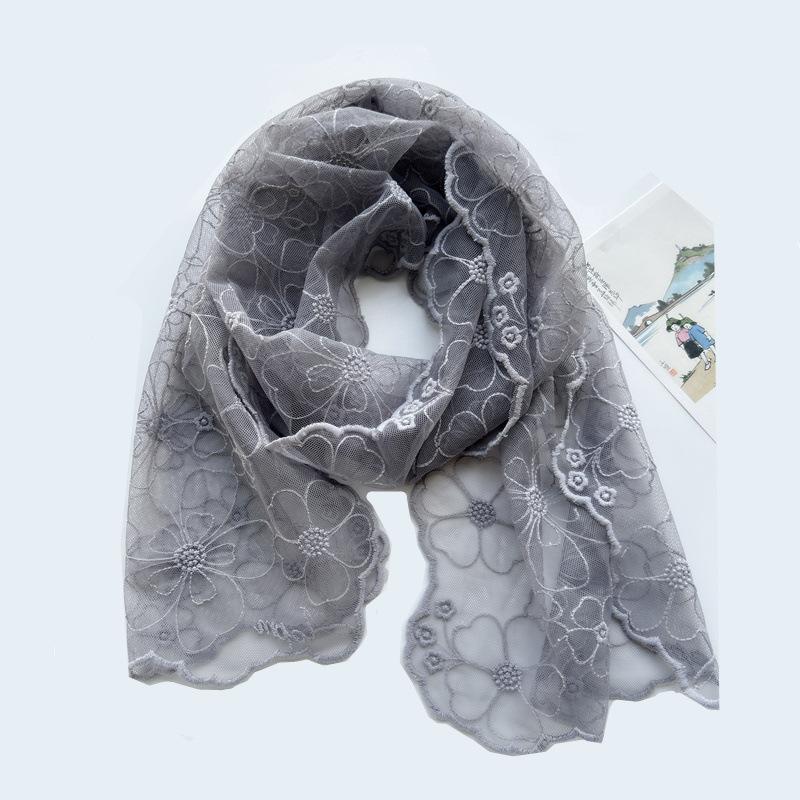 Шарф на весну и осень, корейский тонкий стиль, свежий и элегантный ретро-вышитый кружевной шарф, однотонный универсальный газовый шарф