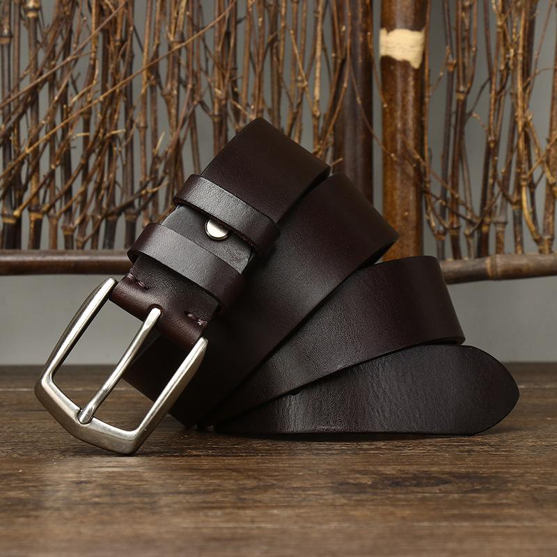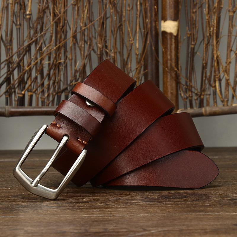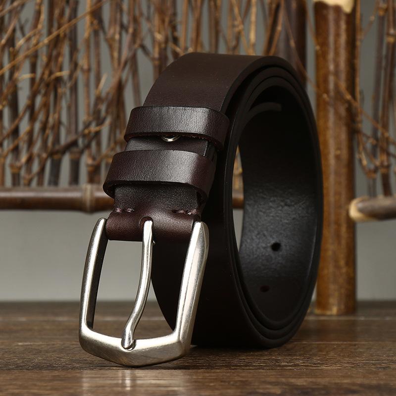 Ремень мужской корейский стиль простой модный первый слой коровьей кожи с масляным воском пряжкой универсальный легкий роскошный повседневный джинсовый ремень