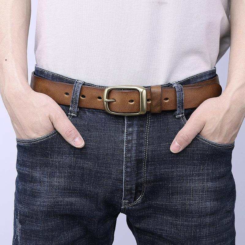 Ремень мужской в стиле ретро из натуральной яловой кожи, джинсовый ремень, мужской студенческий модный кожаный ремень с пряжкой, универсальные женские универсальные