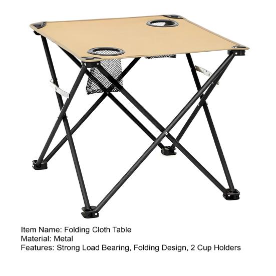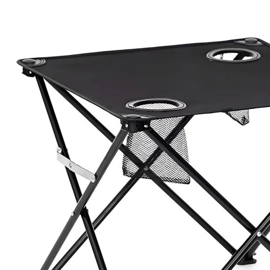 Представляем наш складной столик с тканевой обивкой — прочное и долговечное решение для ваших приключений на свежем воздухе.. Изготовленный из утолщенной ткани Oxford 600D, этот кемпинговый стол устойчив к разрывам, царапинам, износу и пятнам.. Водонепроницаемый слой на задней стороне предотвращает проникновение воды, обеспечивая долговечность.. X-образные рамы изготовлены из прочной стали и обработаны антикоррозийным покрытием, что обеспечивает устойчивую платформу с грузоподъемностью до 44 фунтов.
