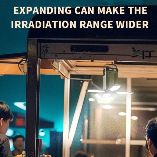 Представляем наш универсальный кемпинговый фонарь, незаменимый для ваших приключений на открытом воздухе. Этот фонарь на солнечной батарее не только источник света, но и аварийный источник питания для вашего телефона.. Его 4-лопастная складная конструкция позволяет регулировать угол освещения на 90 градусов, обеспечивая достаточную яркость в вашем лагере или палатке.