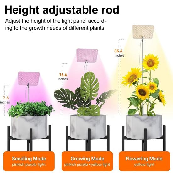 Универсальная регулировка высоты: Точно регулируйте высоту светильника в диапазоне от 7 до 59 дюймов, что обеспечивает гибкость для растений разных размеров и стадий роста.. Легко регулируйте угол и расстояние в соответствии с уникальными потребностями ваших растений!