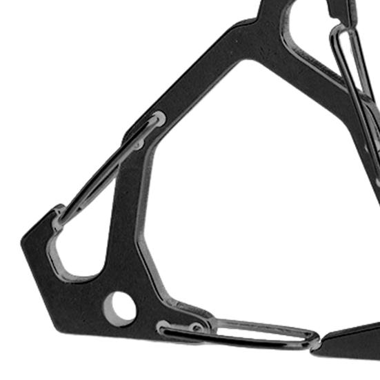 Уникальная треугольная конструкция обеспечивает устойчивость при закреплении предметов на веревках, предотвращая нежелательное дрожание.. Универсальный по своей функциональности карабин может использоваться как три отдельные пряжки, что позволяет подвешивать предметы независимо друг от друга..