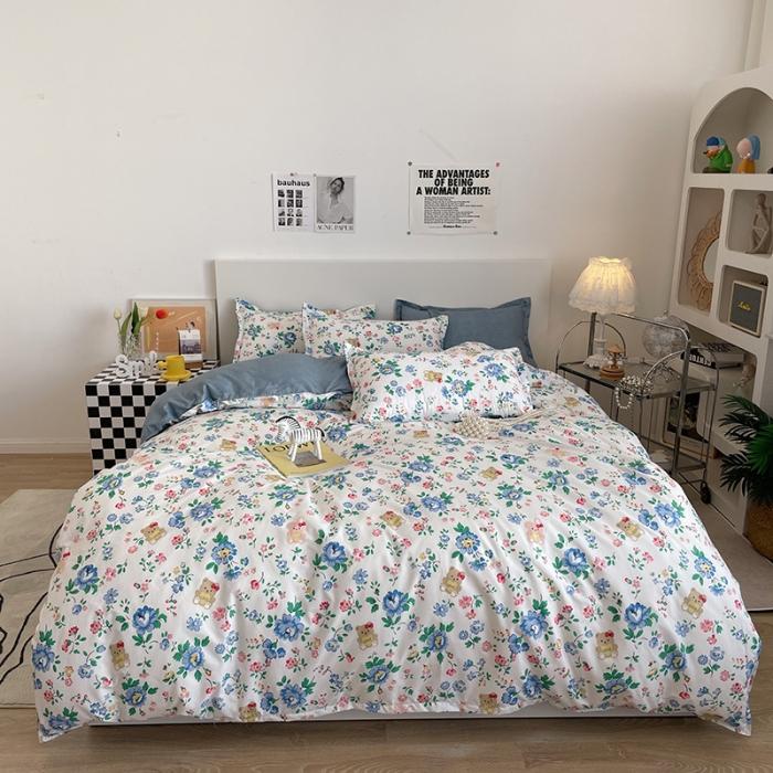 Модный постельный комплект Чистый хлопок Двусторонний узор A/B Простота Простыня, пододеяльник, наволочка