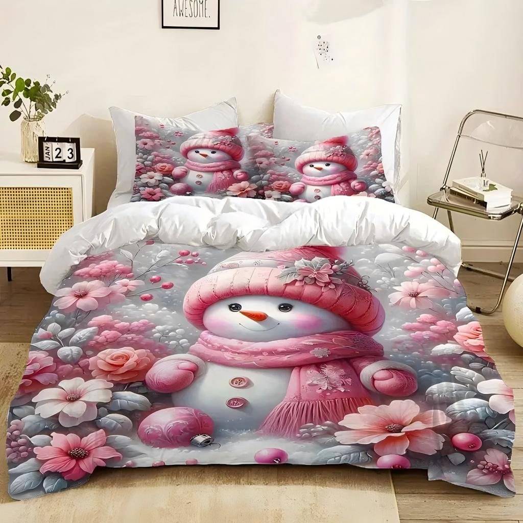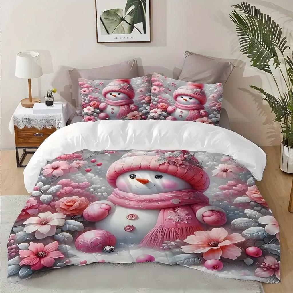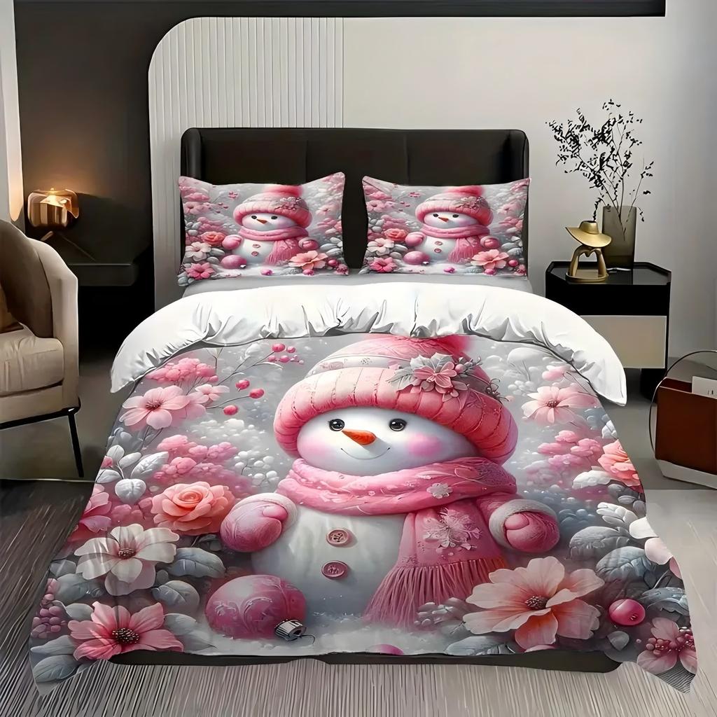 Рождественский Снеговик Узор 3D Принт Комплект Постельного Белья Милый Розовый Стиль Набор Пододеяльников Мягкий Удобный Домашний Роскошный Набор Покрывал