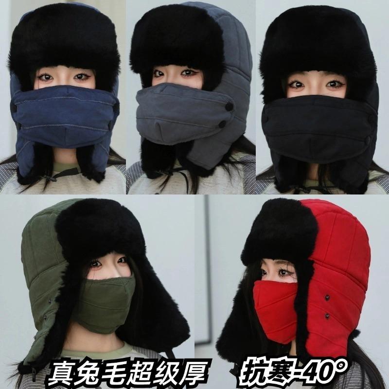 Шапка Мужская зимняя из натурального кроличьего меха, ветрозащитная, женская, модная, для велоспорта, теплая, флисовая, утолщенная, хлопковая шапка